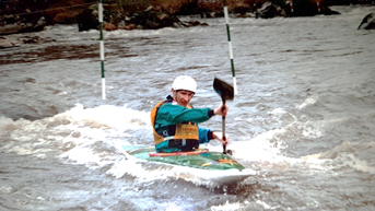 | Georges LEPALLEC /Sélectif national slalom Lathus milieu années 90, photo archives JEV. |